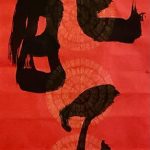 龙马 — leap off the paper with strength and energy. The artist’s brush moves with confidence, every stroke full of life and purpose. Set against the red background, this calligraphy shines with power, symbolising courage, ambition, and unstoppable drive.