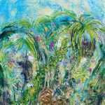 Her expressive layering captures not just the look of the tropics, but its heartbeat — the joy, warmth, and endless energy that fills the air. Every stroke feels spontaneous, yet together they form a harmonious balance between wildness and serenity.